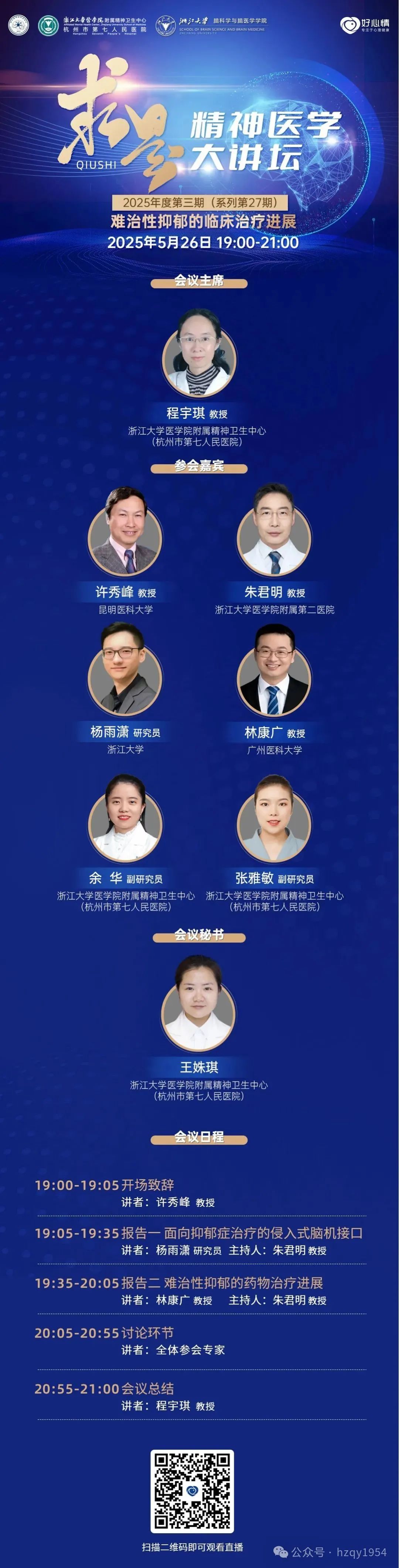 5月26日晚上7点!“求是精神医学大讲坛”2025年第三期上线!共同关注“难治性抑郁的临床治疗进展”!