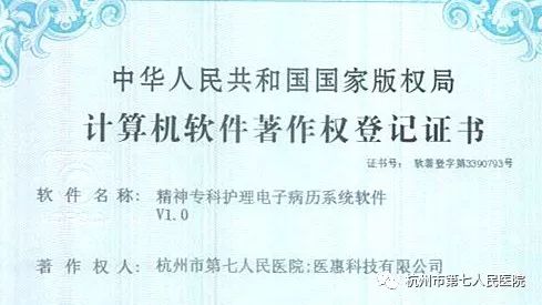 近日,国产直播 七医院成功获得《精神专科护理电子病历系统》的计算机软件著作权登记证书,成为全国首家精神专科医院荣获护理电子病历系统专利。